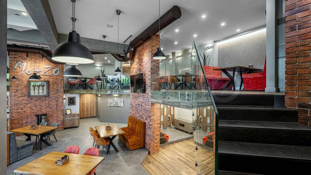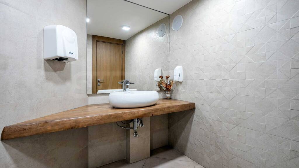 Es verfügt über eine elegante Bar, die als zentraler Punkt auf der ersten Ebene errichtet wurde ? komfortabel, mit Präsenz und Stil. Eine Eismaschine und alles, was für Cocktails, heiße und kalte Getränke benötigt wird, sind vorhanden. Es gibt einen separaten Personalraum, ein kleines Büro und zwei Lagerräume ? praktisch geplant und positioniert.