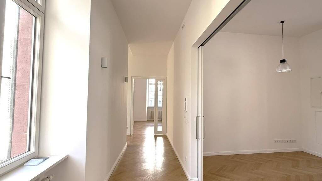 hochwertige Ausstattung nach umfassender Kernsanierung in 2019 (neue Decken, Wände, Böden, Türen, Fenster, Elektroinstallationen, etc.) großzügige Raumhöhe von ca. 3,50 m im 1. Obergeschoss IT-Verkabelung (CAT-7) Parkettboden Teeküchen hochwertig ausgestattete Sanitärbereiche Personenaufzug (bis 2. OG, nicht in das DG) begrünter Innenhof zur Mitbenutzung Balkon im 1. Obergeschoss Dachterrasse im Dachgeschoss