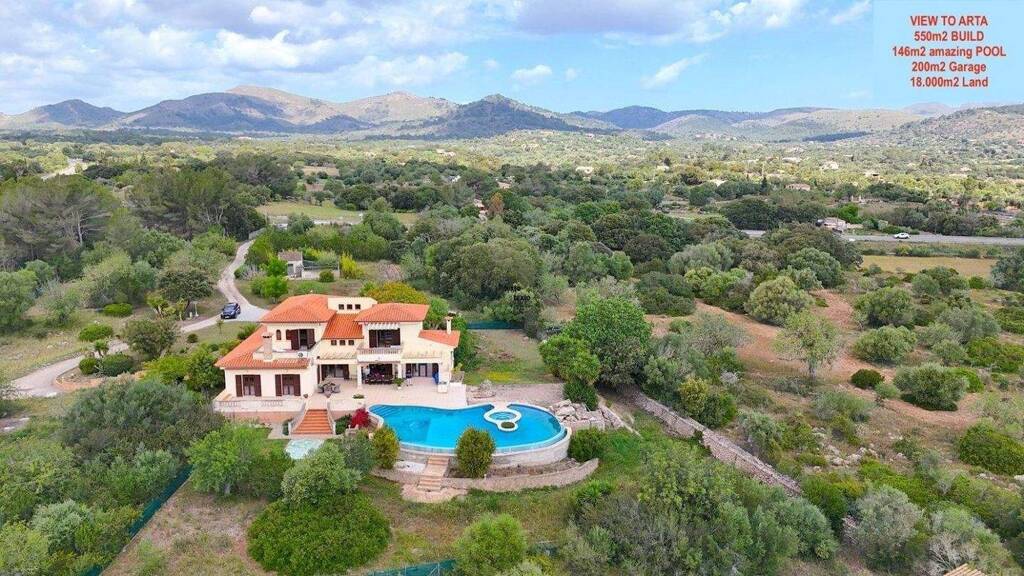 Descripción de la propiedad.¡Bienvenido a su nuevo hogar en plena naturaleza! Esta casa unifamiliar ofrece todo lo que su familia puede desear. Relájese en la piscina privada con hidromasaje y cascada mientras disfruta de la tranquilidad y la belleza de la naturaleza que la rodea. Esta propiedad no sólo ofrece un entorno idílico, sino también instalaciones de primera clase para la comodidad y el lujo. Ideal para familias que buscan un hogar único que ofrezca tanto relajación como entretenimiento. ¡Experimente una vida de puro bienestar en esta casa de ensueño única!.Ubicación:.La encantadora ciudad de Arta ofrece una ubicación ideal para familias y parejas que buscan un retiro tranquilo. ..Las necesidades diarias están cubiertas por varios supermercados, médicos y farmacias en las inmediaciones. El cuidado de los niños está bien organizado con guarderías, escuelas primarias y secundarias. ..En su tiempo libre, los residentes pueden explorar el pintoresco casco antiguo, entretenerse en acogedores cafés o disfrutar del campo cercano. El centro de la ciudad y la gran urbe más cercana están a un corto trayecto en coche...Las conexiones de transporte son excelentes gracias a la cercana parada de autobús y a la carretera principal. Esto proporciona una rápida conexión con otras partes de la isla. ..Estos aspectos atractivos hacen de Artà un lugar muy solicitado para la propiedad..Características:.Entre en esta hermosa casa independiente y déjese encantar por los suelos de mármol de alta calidad que brillan con elegancia bajo sus pies. Las ventanas de teca permiten que la luz del día entre suavemente en las habitaciones y cree un ambiente cálido y acogedor...Disfrute del acogedor calor de la calefacción central de gasoil, mientras que el aire acondicionado garantiza temperaturas agradables durante todo el año. Los armarios empotrados ofrecen un amplio espacio de almacenamiento para sus objetos personales y facilitan la organización de su vida diaria...El portón eléctrico y la puerta del garaje no sólo le ofrecen seguridad, sino también comodidad. El pozo privado suministra suficiente agua al cuidado jardín para que pueda disfrutar de un verde oasis de tranquilidad...Experimente las comodidades que esta casa le ofrece y disfrute de la electricidad suministrada por Gesa. Siéntase como en casa en esta casa y déjese encantar por la amplitud de las habitaciones. Bienvenido a casa.