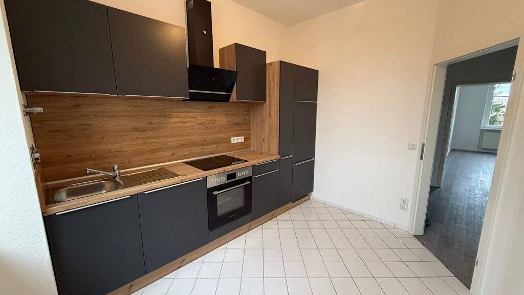 In einem Mehrfamilienhaus im 1. Obergeschoss befindet sich diese charmante neu renovierte Wohnung. Sie bietet zwei gut geschnittene Zimmer und ein Badezimmer, welches mit sowohl einer Dusche als auch einer Badewanne ausgestattet ist. Die separate Küche kommt mit einer modernen Einbauküche, die über eine Geschirrspülmaschine und einen separaten Gefrierschrank verfügt, und der Boden ist stilvoll Fliesen und neuem Vinyl gestaltet. Ein PKW-Stellplatz rundet das Angebot ab und sorgt für zusätzlichen Komfort.