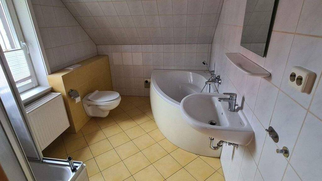 Bemerkungen: Die Wohnung im verfügt über eine Einbauküche. Im 1. OG befindet sich Parkett, im Dachgeschoss Laminat. Im DG befindet sich ein Gäste-WC. Das Bad und das Gäste-WC sind gefliest. Das große Bad im 1. OG verfügt über eine Badewanne und eine Dusche. Im Keller befindet sich neben drei großen Abstellräumen, auch ein Waschmaschinen- und Trockenraum mit allen notwendigen Anschlüssen. Auf dem Grundstück befindet sich ein Gartenhäuschen als Abstellfläche für Gartenmöbel, Fahrräder u.ä. Die hochwertigen Holzfenster wurden 2016 erneuert. Die beiden Dachflächenfenster wurden erst 2022 ausgewechselt. Neben der sonnigen großzügigen Terrasse steht ein zur Hauptstraße durch eine Hecke abgeschirmter Garten zum Relaxen und sicheren Spielen für Kinder zur Verfügung. Das Grundstück verfügt über einen PKW-Stellplatz, dessen Miete in der angegebenen Kaltmiete bereits enthalten ist.