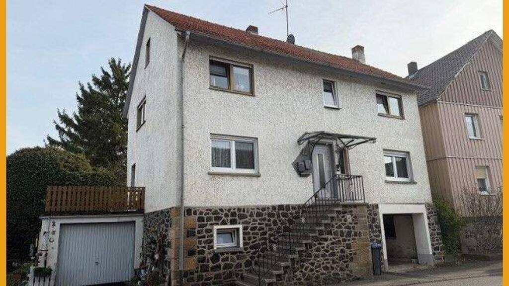 Das um das Jahr 1950 auf einem pflegeleichten Grundstück erbaute Wohnhaus verfügt über zwei getrennte Wohneinheiten mit je ca. 80m² Wohnfläche, die aktuell beide vermietet sind. Das Erdgeschoss gliedert sich auf in ein Wohnzimmer, ein Esszimmer, ein Schlafzimmer, eine Küche und ein Badezimmer im Stiel der 80er Jahre mit Wanne. Vom Wohnzimmer aus gelangen Sie direkt auf den Balkon. Im Obergeschoss finden Sie die zweite Wohneinheit mit einem Wohnzimmer, zwei Schlafzimmern, einer Küche und einem weiteren Badezimmer. Ausbaupotential bietet das Dachgeschoss. Auf Wunsch kann hierbei Baumaterial übernommen werden. Hier könnte eine dritte Wohneinheit ausgebaut werden. Das Kellergeschoss bietet zudem Lagermöglichkeiten und den Heizungsraum. Für die PKW stehen zwei Garagen zur Verfügung, die jeweils einen direkten Zugang zum Haus haben. Die steigerbare Nettomiete liegt derzeit bei 8.400,-€.