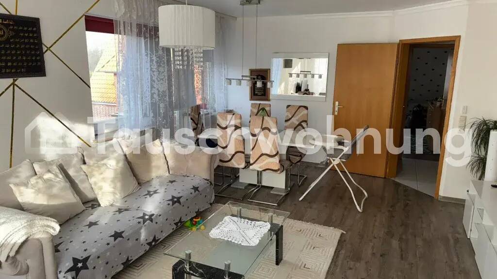 Es handelt es sich hierbei um ein Tauschangebot. (Anbieter-ID: 313194) Zum Tausch steht eine naturnahe und helle 3 - Zimmer Wohnung mit 70m² Wohnfläche, die den perfekten Rückzugsort bietet. Beim Betreten empfängt Sie ein großzügiger Flur mit hellen Fliesen. Die Böden der Wohnräume sind mit Laminat (Eiche rustikal) ausgestattet. Die Einbauküche ist funktional gestaltet mit Cerankochfeld, Backofen und Spüle. Das Küchenfenster lässt Ihren Blick in die Natur schweifen. Das Wohnzimmer ist großzügig geschnitten und hell, hier ist die Atmosphäre gleichermaßen stilvoll und entspannt. Es ist genüg Platz für eine Sofalandschaft und einen Esstisch. Der Zugang zum Balkon rundet den Wohnbereich ab. Hier ist Platz für eine kleine Sitzgruppe und blühende Pflanzen. Hier können Sie den Tag mit Vogelgezwitscher beginnen oder bei bei einem Glas Wein den Sonnenuntergang genießen. Zwei weitere Räume bieten vielseitige Nutzungsmöglichkeiten - ein gemütliches Kinder - oder Bürozimmer mit kleinen Dachschrägen und ein weiteres geräumiges Schlafzimmer. Das Badezimmer ist ausgestattet mit einer Dusche, Toilette und einen Waschmaschinenanschluss. Die Wohnung ist perfekt für alle, die das Leben im Grünen mit den Annehmlichkeiten einer durchdachten Wohnraumgestaltung verbinden möchten. Diese Anzeige wurde von einem Nutzer eingestellt. Tauschwohnung.com stellt nur die Plattform bereit und ist nicht Anbieter der Wohnung. Hinweise auf mögliche Rechtsverletzungen (z. B. bei Fotos) bitte hier melden: https://www.tauschwohnung.com/reporting-process-for-illegal-content