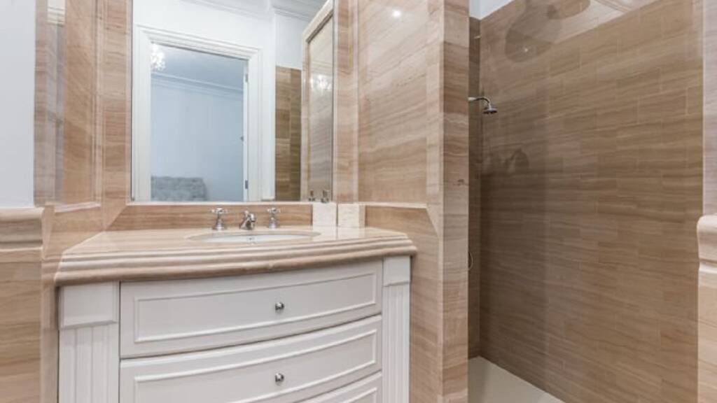The apartment offers a very spacious living area, an all-equipped kitchen, 3 bedrooms with bathrooms en suite, a guest toilet and a laundry room. The property features luxury materials such as marble bathroom elements, stone and oak parquet floors.