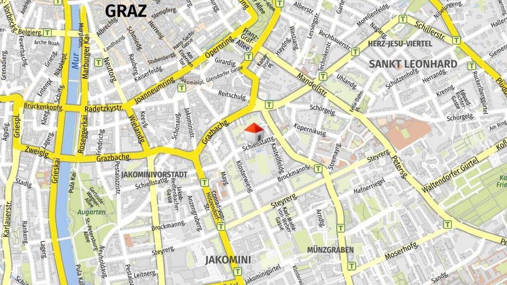 Der Dietrichsteinplatz befindet sich nur ca. 250 m entfernt. Den Jakominiplatz kann man in rund 5 Minuten erreichen.