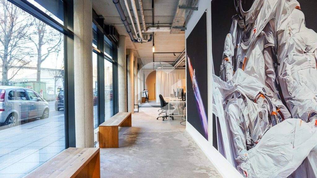 Die ca. 188 qm große Fläche besticht durch ein offenes Loft-Bürokonzept mit klaren Sichtachsen und einer großzügigen Raumwirkung. Flexible Zonierung durch Vorhänge und leichte Raumteiler ermöglicht eine vielseitige Nutzung von Arbeits-, Meeting-, Präsentations- und Lounge-Bereichen. Die helle, industrielle Architektur mit Sichtbeton und offenen Decken schafft in Kombination mit viel Tageslicht eine moderne, kreative Agenturatmosphäre. Wohnliche Möblierung sorgt für eine hohe Aufenthaltsqualität, während die offenen Strukturen Kommunikation, Flexibilität und ein repräsentatives Erscheinungsbild ideal unterstützen.