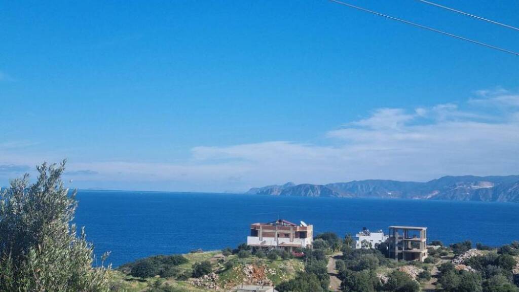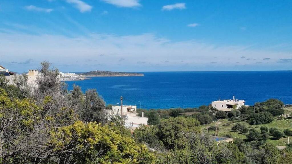 Von seiner erhöhten Position am Hang eines kleinen Hügels genießt das Grundstück einen uneingeschränkten Blick auf das Meer (Mirabello-Bucht), die Stadt Agios Nikolaos, die Berge und atemberaubende Sonnen- und Mondaufgänge.