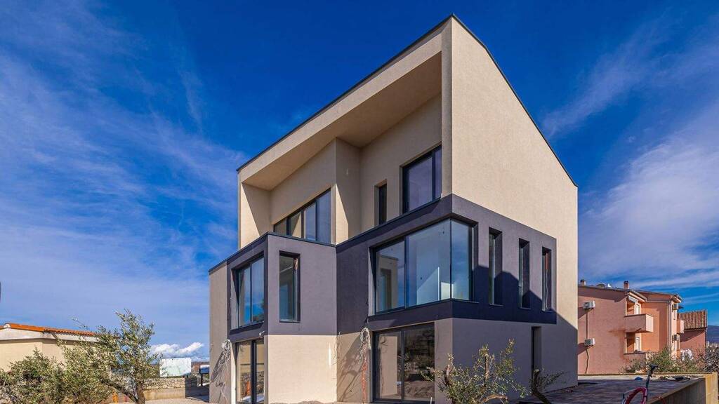 Die Maisonette-Wohnung mit einer Nettowohnfläche von 105,54 m² und einem dazugehörigen 150 m² großen Garten bietet eine äußerst funktionale und komfortable Wohneinheit in einem modernen Neubau in Krk. Das großzügige 3S+DB-Konzept vereint die Praktikabilität eines Einfamilienhauses mit dem Komfort modernen Wohnens.