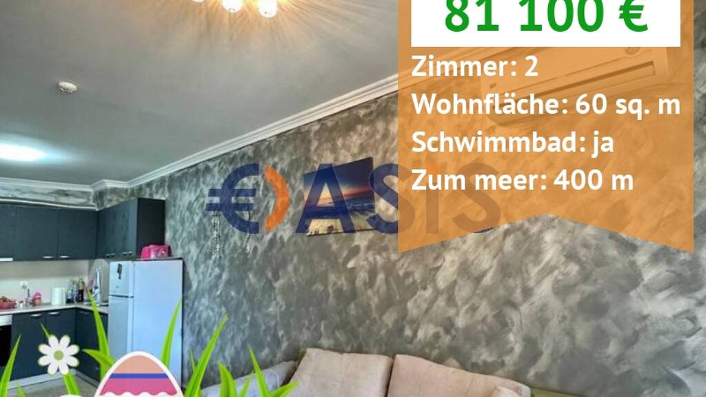 Apartment mit einem Schlafzimmer im Olimp-Komplex, 60 m², Sveti Vlas, Bulgarien, 81.100 Euro #31893630