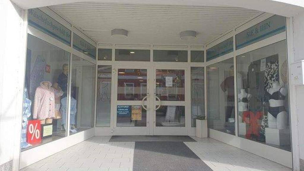 - ca. 2,74 m Raumhöhe - Schaufenster, 2fach verglast, mit Beleuchtung - weiße Kunststofffenster mit Rolläden - weiße Deckenpaneele mit Spiegelklammern und Einbaustrahler - gefliester Zugang - innen: Laminat, PVC, Fliesen in WC - dezent platzierte, große Heizkörper