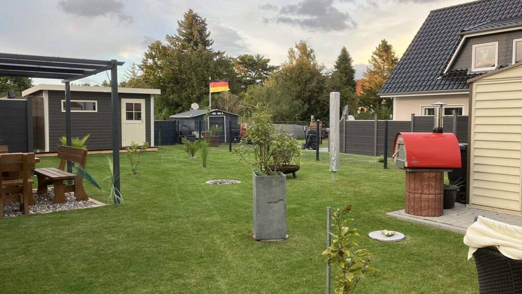 Von der Terrasse gelangen Sie in den privaten Garten, der vielseitige Nutzungsmöglichkeiten bietet - ob zum Entspannen, Spielen oder Gärtnern. Ein Gartenhäuschen sorgt für praktischen Stauraum für Gartengeräte oder Fahrräder.