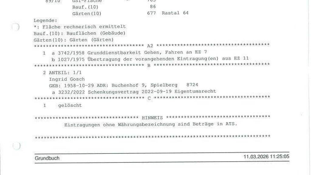 Die Liegenschaft steht im Alleineigentum und wird als Wohnobjekt genutzt. Das Einfamilienhaus ist nach Kaufvertragsabwicklung grundsätzlich sofort beziehbar, sodass ein zeitnaher Einzug möglich ist. Der derzeitige Zustand kann als gepflegt bezeichnet werden, wobei altersübliche Adaptierungen und Modernisierungen je nach Anspruch der Käuferseite zu empfehlen sind. Die Zufahrt erfolgt über einen Servitutsweg der im Grundbuch einverleibt ist. Der Kaufpreis für das Objekt beträgt 164.000,00 €. Zusätzlich zum Kaufpreis fallen die üblichen Kaufnebenkosten wie Grunderwerbsteuer, Grundbucheintragungsgebühr und Kosten der Vertragserrichtung an, über die Sie im Rahmen der Kaufabwicklung eingehend informiert werden. Der Immobilienmakler ist als Doppelmakler tätig.