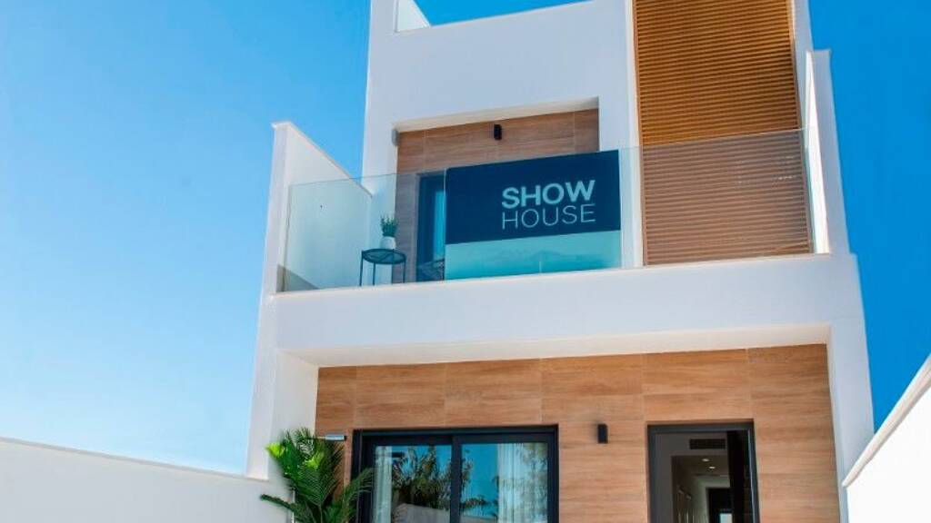 Brandneuer Komplex von 18 Reihenhäusern mit 3 Schlafzimmern und privatem Swimmingpool in San Pedro del Pinatar (Murcia), umgeben von allen Annehmlichkeiten, Sportanlagen, in der Nähe von mehreren Golfplätzen und nur 5 Minuten vom Mittelmeer und den Stränden des Mar Menor entfernt.