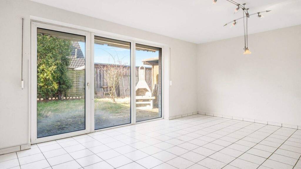 Das großzügige Wohnzimmer ist der zentrale Wohnbereich des Hauses. Durch große Fenster fällt viel Tageslicht in den Raum, und der direkte Zugang zur Terrasse ermöglicht einen schönen Blick in den Garten. Die Terrasse kann von einer Markise überdacht werden und bietet Platz für Sitzgelegenheiten und lädt zum Verweilen ein.