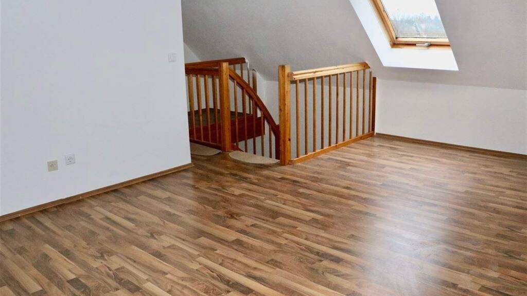 Das Wohnzimmer bietet direkte Zugang zum Balkon und ist direkt mit der modernen Einbauküche verbunden. Auf der unteren Ebene befindet sich noch ein Zimmer welches sich ideal als Schlafzimmer eignet. Das hell geflieste Bad ist mit einer Badwanne ausgestattet. Über die schöne Holztreppe gelangt man in den oberen Teil der Wohnung. Dort wartet ein großzügiges helles Zimmer darauf, eingerichtet zu werden.
