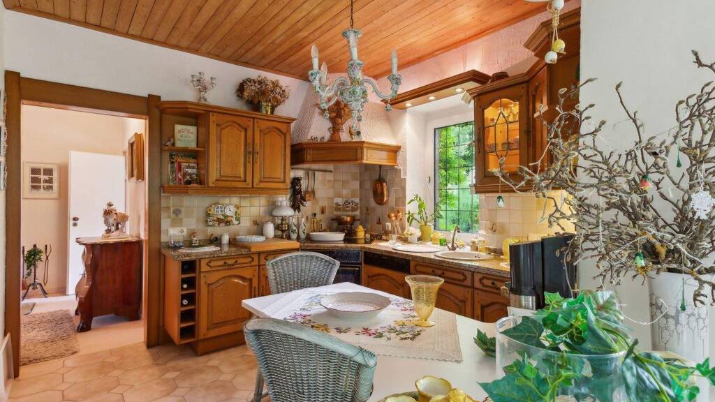 Das vollständig unterkellerte Haus inklusive Anbau erweitert die Nutzfläche erheblich. Im Keller stehen neben einer zusätzlichen Küche auch eine Trockensauna zur Verfügung, die den Wohnkomfort abrundet.