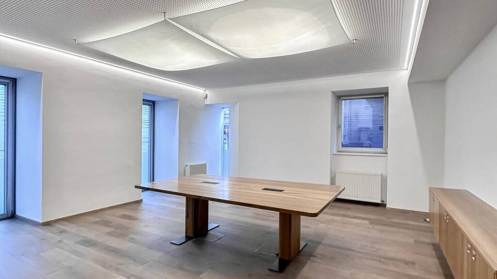 Die aktuelle Aufteilung umfasst mehrere Einzel- und Gemeinschaftsbüros, Meetingräume, einen Empfangsbereich sowie eine kleine Teeküche. Alle Büroräume sind möbliert und bezugsfertig, was den sofortigen Einzug und den Start des Geschäftsbetriebs ermöglicht. Der ruhige, begrünte Innenhof schafft eine angenehme Atmosphäre, die das Arbeiten im Stadtzentrum besonders attraktiv macht.