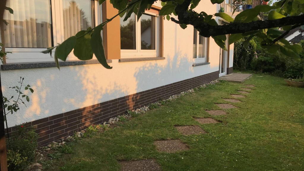 Diese helle Gartenwohnung verbindet naturnahes Wohnen in ruhiger Feldrandlage mit dem Komfort einer großzügigen Süd-West-Terrasse und einem eigenen eingewachsenen Gartenanteil mit ca. 100 m² Fläche, überwiegend Rasenfläche.