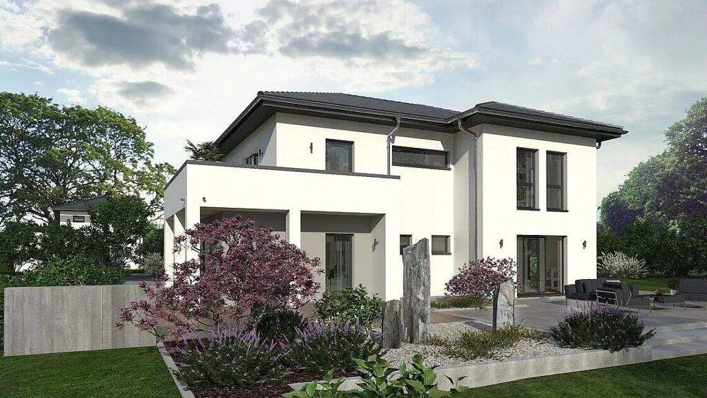 Unsere elegante Stadtvilla mit Pyramidendach besticht durch mediterrane Leichtigkeit und flexible Wohnraumnutzung. Während die Bauherren eine Ebene selbst bewohnen, bietet die zweite Platz für Eltern, erwachsene Kinder und Business. Oder wollen Sie lieber doch vermieten? Das ausgelagerte Treppenhaus macht eine getrennte Nutzung möglich. Beide Etagen garantieren mit 2,80 m Raumhöhe maximalen Komfort und Wohnen der besonderen Art. Die Grundrisse sind gut durchdacht und bis in den letzten Winkel perfektioniert. So wird jeder Quadratmeter optimal genutzt. Für Rundum-Lichteinfall sorgen bodentiefe Fenster.
