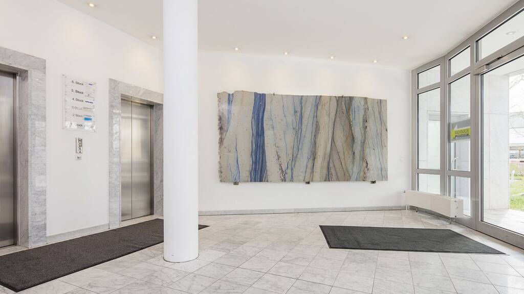 Hinter einer architektonisch bemerkenswerten Glasfassade befinden sich helle, große Büroräume. Die repräsentative Immobilie bietet mit ihrer hochwertigen Ausstattung das ideale Umfeld für Mieter aus den Bereichen IT-Technologie, Finanzdienstleister, für Medienunternehmen und Artztpraxen.