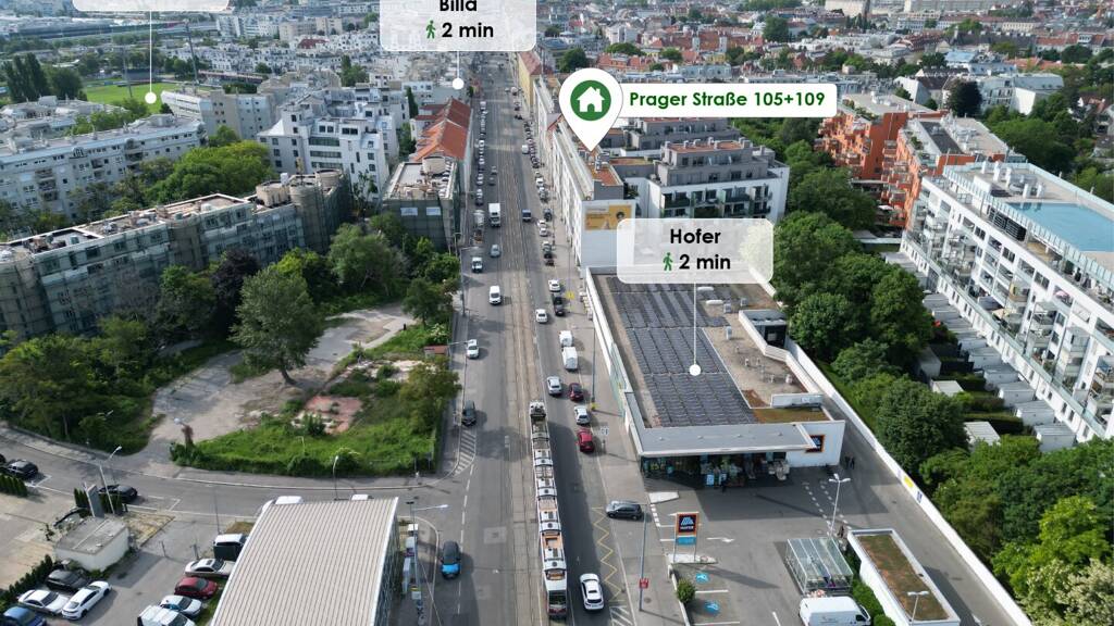 Nähe: Prager Straße, Anton-Bosch-Gasse, Deublergasse, FAC Platz, Lorettowiese, Aupark Jedlesee, Neue Donau, S-Bahn Jedlersdorf, Straßenbahn Linie 26 Hopfengasse