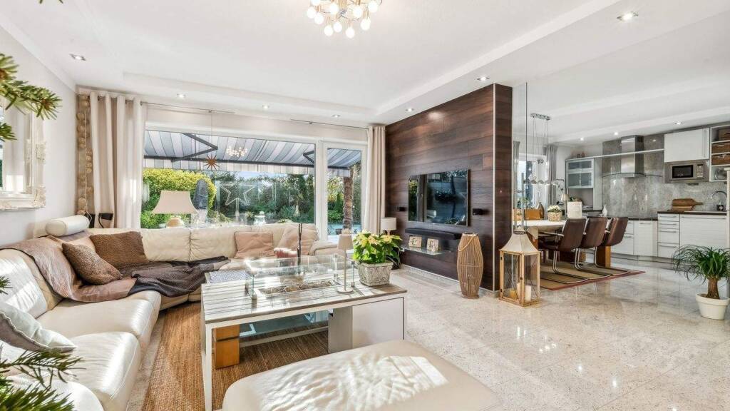 Der Mittelpunkt der Wohnung ist der weitläufige Wohn- und Essbereich mit direktem Bezug zum Garten - ideal für entspannte Stunden, gesellige Abende oder Arbeiten im Grünen. Große Fensterflächen sorgen für eine freundliche und lichtdurchflutete Atmosphäre.