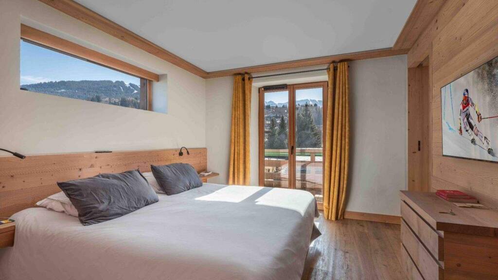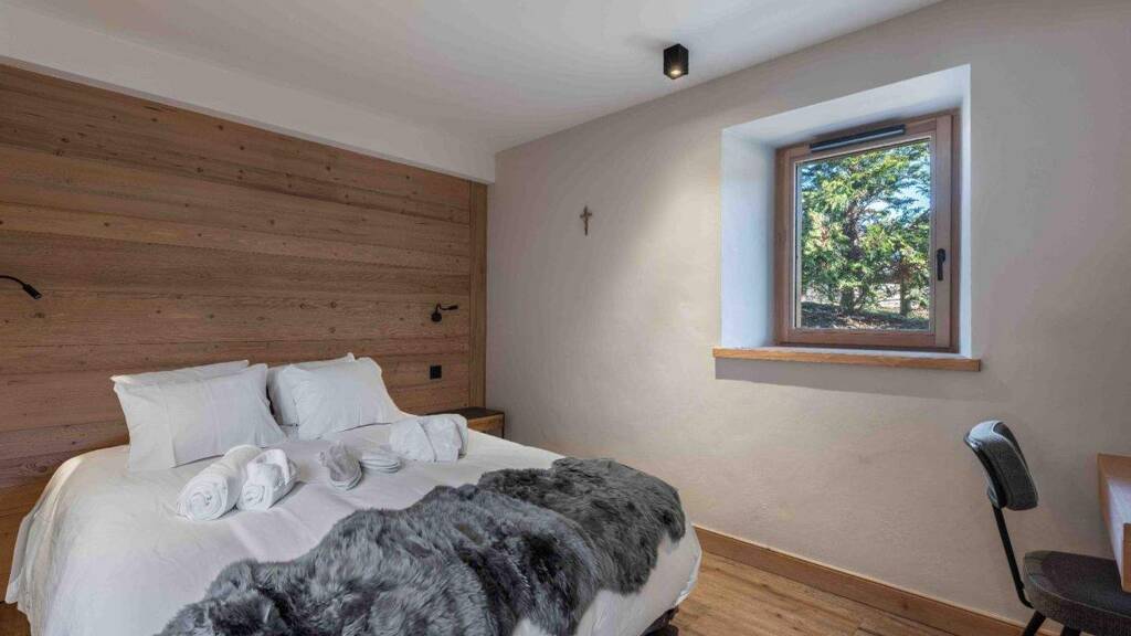 The chalet has seven bedrooms and six bathrooms, including a bedroom specially designed for children with bunk beds. A leisure and relaxation area completes the property, with a TV room and steam room.
