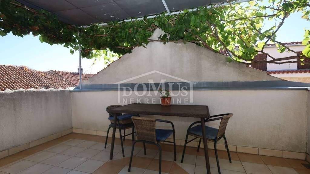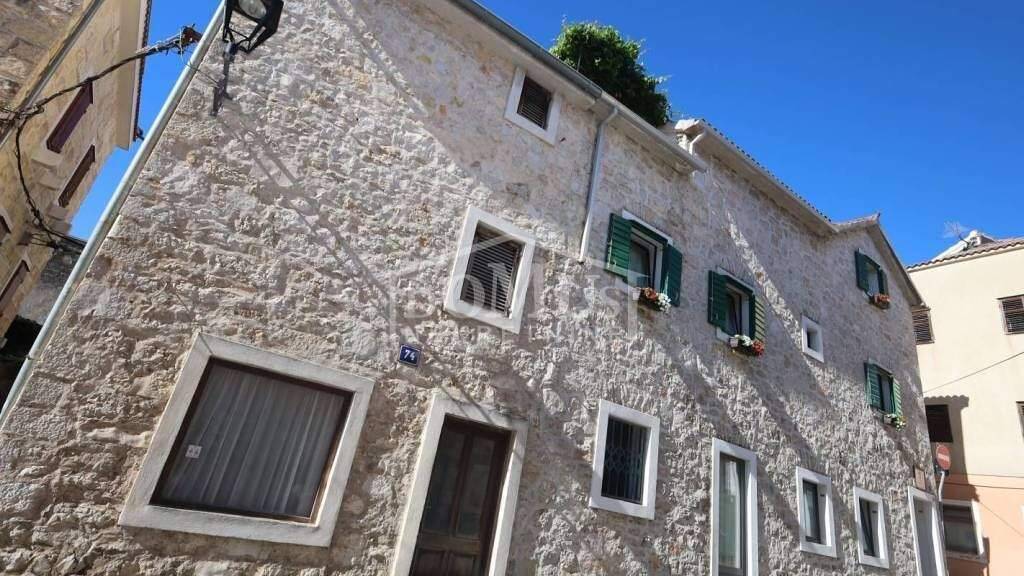 Vodice, im Stadtzentrum, Steinhaus mit Geschäftsraum und zwei Wohneinheiten mit insgesamt 193,87 m² Nutzfläche. Das Haus hat 3 Etagen (Erdgeschoss + erster Stock + Dachgeschoss). Im Erdgeschoss befindet sich ein Geschäftsraum mit einer Fläche von 67,74 m². Eine Außentreppe führt in den ersten Stock, wo sich ein separater Eingang zu einer Einzimmerwohnung befindet. Im ersten Stock befindet sich auch der Eingang zur zweiten Maisonettewohnung (erster Stock und Dachgeschoss), die im ersten Stock aus einem Flur, einem Badezimmer und einem Schlafzimmer besteht. Eine innere Treppe führt in das Dachgeschoss, wo sich ein Schlafzimmer, ein Badezimmer, ein Flur, eine Küche mit Essbereich und ein Wohnzimmer mit Zugang zu einer 11 m² großen Terrasse mit Meerblick befinden. Das Haus ist geeignet zum Wohnen, für Tourismus oder zur Vermietung. Es ist vollständig möbliert und sofort bezugsfertig. Der Preis beinhaltet die komplette Möblierung. Die Entfernung zum Meer beträgt nur 200 m, und zum angelegten Strand 450 m.