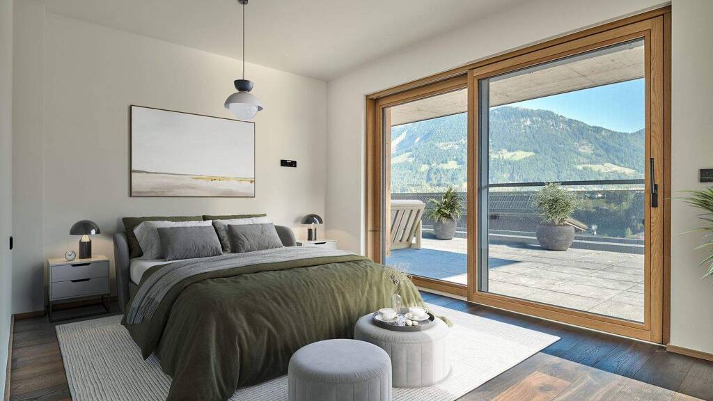 In sonniger Panoramalage mit Blick auf die umliegende Bergwelt entstand ein außergewöhnlicher Wohnkomplex mit zwei eleganten Maisonette-Wohnungen und einem exklusiven Penthouse.