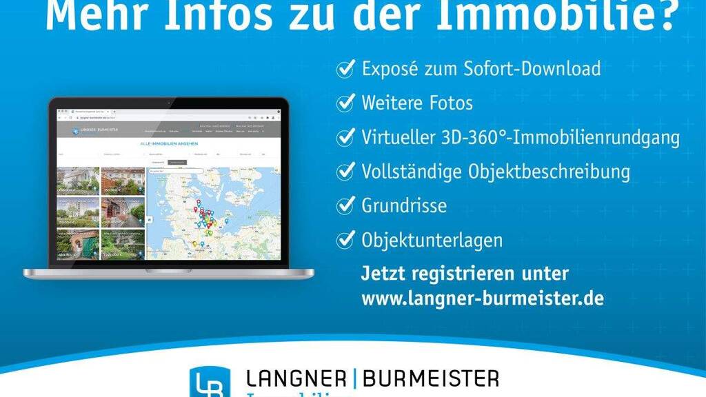 IHRE VORTEILE: + Vollständiges Exposé inkl. Adresse zum Sofort-Download + Viele weitere Fotos + Zugriff auf Objektunterlagen inkl. der Grundrisse + Zugang zum virtuellen 3D-360°-Immobilienrundgang + Mit nur einer Anmeldung haben Sie zusätzlich Zugang zu allen weiteren Immobilien-Angeboten
