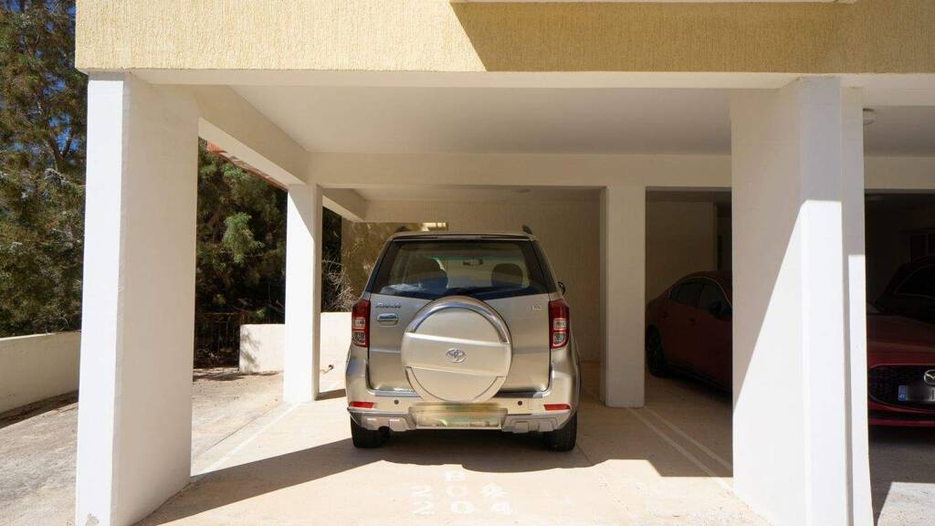 Bewohner genießen Zugang zu einem schönen Gemeinschaftspool, ideal zum Abkühlen an warmen Mittelmeertagen. Zudem verfügt die Wohnung über einen überdachten Privatparkplatz, Aufzug, und Fliegengitter in allen Räumen.