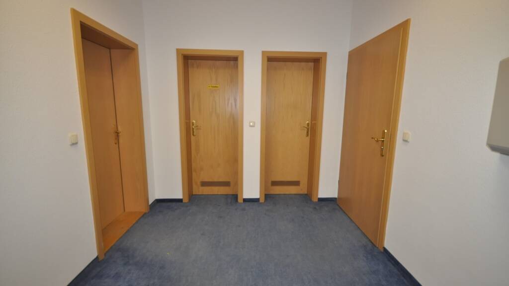 Aufteilung: Flur, 3 Büroräume, getrennte Sanitäranlagen, separate Miniküche
