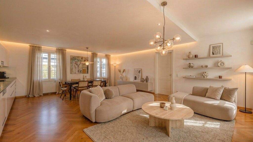- Moderne und gleichzeitig klassische Einbauküche - Praktische Beleuchtungseinbauten (teilweise mit Bewegungsmeldern) - Edle und langlebige Kirschparkettböden im eleganten Fischgrätmuster - Moderne Bäder