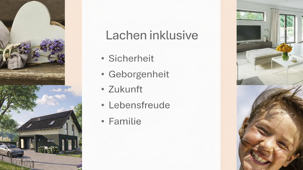 Neben kurzen Bauzeiten, innovativer Haustechnik, attraktiver Architektur und hochwertiger Qualität bietet Ihnen das angebotene Danhaus im folgende Mehr-Werte: - Danhaus-Bodenplatte - auf Wunsch auch als Effizienzhaus 40 oder 40 Plus lieferbar - alle Danhäuser standardmäßig mit Klima-Hybrid Komfort-Wänden - massiv vorgemauerte Verblendsteinwand mit besten Schallschutzwerten & nordisch / skandinavischer Optik (kostenneutral auch mit Putz- oder Holzfassade) - Zimmermannmäßiges Pfettendach, Hybrid-Binderdach oder Binderdach mit großen Dachüberständen - Komplette Elektro-, Sanitär- und Heizungs-Installation inkl. Grundinstallation für das Danhaus auf Danhaus-Bodenplatte bzw. -Keller - Rollläden im Standard enthalten, auf Wunsch auch mit Elektroantrieb lieferbar - Klima-Komfort-Wärmepumpe: Luft-Luft-Wärmepumpe für Heizen, Lüften, Kühlen, Luftreinigung und Warmwasser oder - Luft-Wasser-Wärmepumpe mit Fußbodenheizung, Kühlung und zentraler kontrollierter Wohnraum Be- und Entlüftung inkl. Wärmerückgewinnung oder - Sole-Wasser-Wärmepumpe: Erdwärme-Heizung mit Fußbodenheizung, Kühlung und zentraler kontrollierter Wohnraum Be- und Entlüftung inkl. Wärmerückgewinnung - Hochwertige Kunststoff-Haustür - Kunststoff-Fenster mit 3-Scheiben-Wärmeschutzverglasung - Dachflächenfenster mit Kipp- und Schwingfunktion - Massiv-Vollholz-Treppe aus Buchenholz - Bauleistungsversicherung