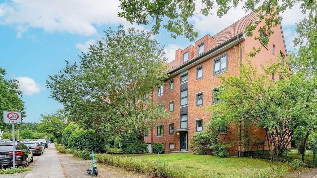 Das Mehrfamilienhaus wurde 1959 erbaut und befindet sich in herrlich ruhiger Lage im Glockenblumenweg 2-8 direkt an der Grenze zu Eimsbüttel. Die 28 Drei-Zimmer-Wohnungen verteilen sich auf vier Hauseingänge und haben Größen von 59 m² bis 71 m². Alle Einheiten haben nach Süden ausgerichtete Balkone und einen Abstellraum in der Wohnung. Das Objekt selbst wurde laufend instandgehalten, so wurden 2022 die Fenster und Hauseingangstüren erneuert, die Treppenhäuser malerisch aufbereitet und 2021 die Beheizung und Warmwasseraufbereitung zentral erneuert. Es gibt keinen größeren Renovierungsstau. Haus und Umfeld befindet sich in einem sehr gepflegten Zustand.