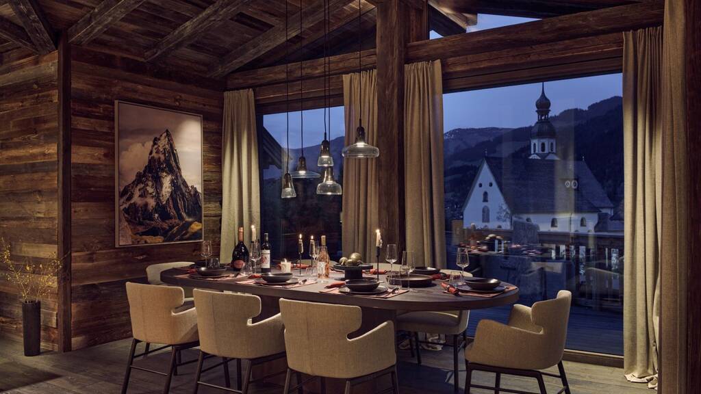 Eingebettet in den malerischen Ortskern von Jochberg zelebriert diese Lodge die traditionelle Handwerkskunst in Verbindung mit zeitgenössischem Design. Die einladenden Terrassen werden ganztägig von der Sonne verwöhnt und bieten reizende Ausblicke auf das Dorfzentrum mit der historischen Kirche sowie in die umgebende Bergwelt. Die fußläufige Anbindung an den Skilift zählt als weiteres Highlight dieser Lodge.Die sanfte Hanglage erlaubte eine intelligente Bebauung, bei der der freistehende Gebäudekörper der Lodge so positioniert wurde, dass sich optimale Blickachsen in alle Himmelsrichtungen ergeben. Die Lodge erstreckt sich über zwei Ebenen.Das offene Raumkonzept im Wohn- und Essbereich schafft Großzügigkeit und Wohnkomfort. Eine hochwertig ausgestattete Küche, ein speziell designter Kamin sowie der offene Sichtdachstuhl aus Altholz verleihen dem Raum eine warme, alpine Atmosphäre. Großflächige Fenster sorgen für lichtdurchflutete Räume und eröffnen beeindruckende Ausblicke.