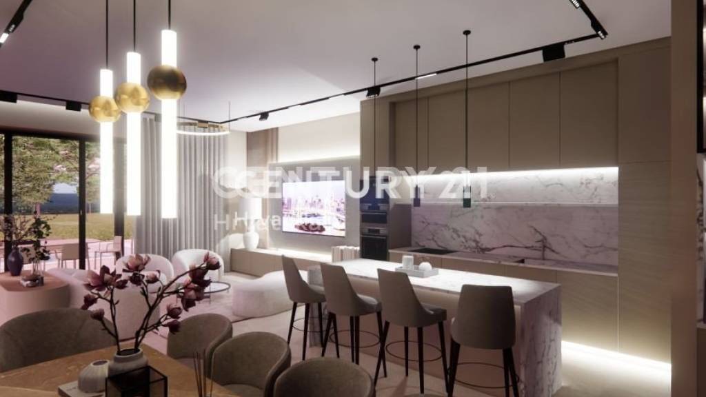 Dieses moderne einstöckige Haus zieht mit seiner landschaftlich gestalteten Umgebung und einem 30 m² großen Swimmingpool die Aufmerksamkeit auf sich und ist eine der 8 Villen dieses einzigartigen Projekts.