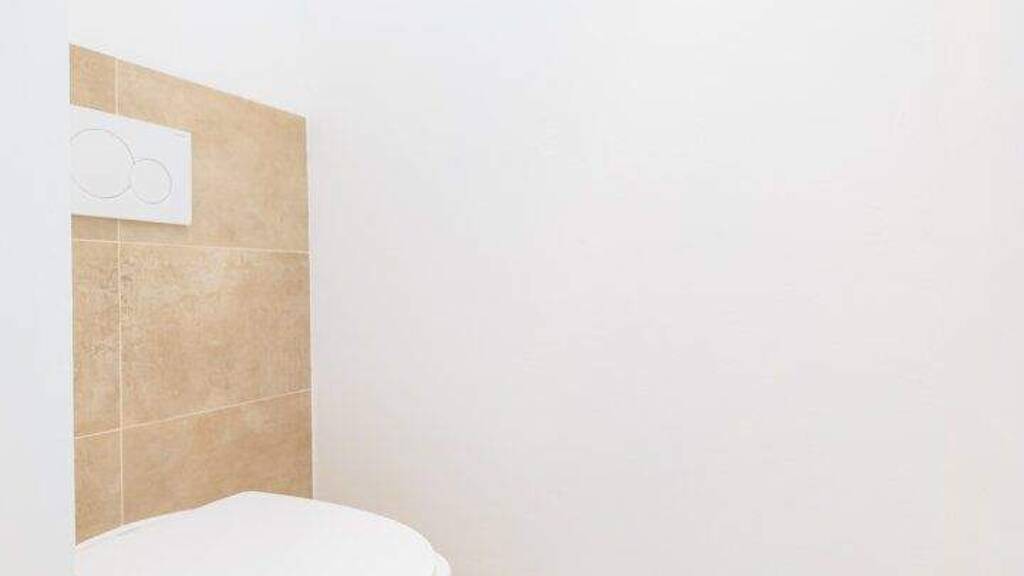 Das Badezimmer überzeugt mit stilvollem Design, ebenerdiger Dusche, großem Spiegel und viel Tageslicht durch das Fenster. Praktisch integriert ist hier auch der Anschluss für Ihre Waschmaschine. Ein separates WC sorgt zusätzlich für Komfort.