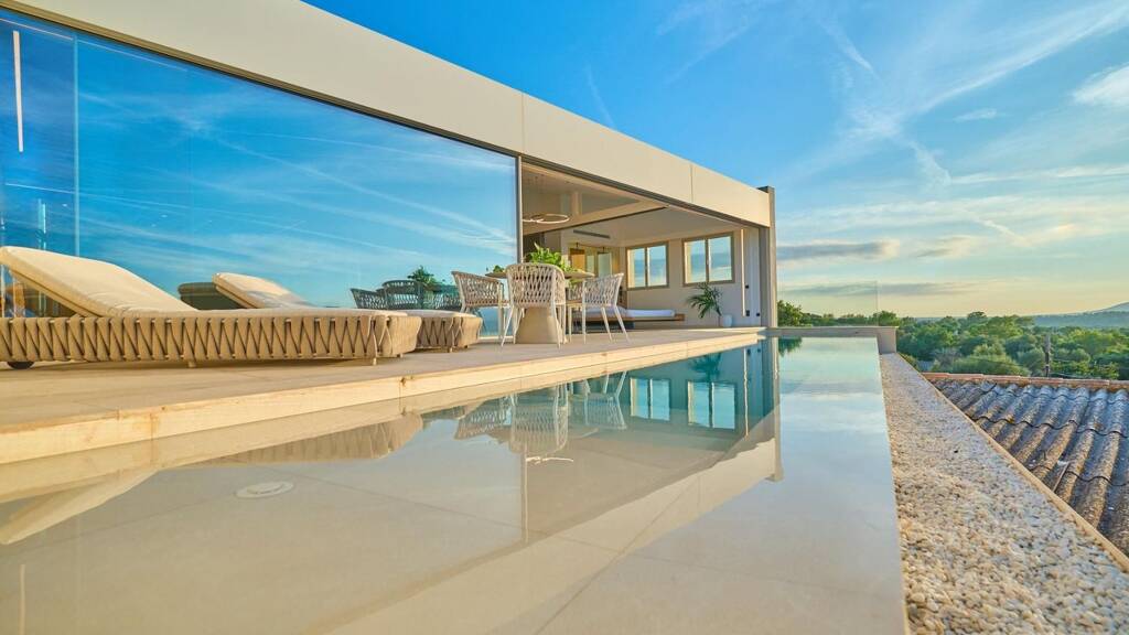 EXKLUSIV - Diese atemberaubende Luxusvilla mit 4 Schlafzimmern befindet sich im charmanten Dorf Costitx und kombiniert helles, modernes Interieur mit spektakulärem Blick auf die umliegenden Berge. Mit einem Infinity-Pool und einer geräumigen Terrasse bietet das Anwesen eine ruhige Oase im Herzen Mallorcas. Nur 100 Meter vom Dorfplatz entfernt, genießt das Anwesen den Komfort einer zentralen Lage und bewahrt gleichzeitig eine ruhige und private Atmosphäre mit ununterbrochenen Naturlandschaften. Costitx ist ein charmantes mallorquinisches Dorf, das eine Atmosphäre absoluter Ruhe bietet, umgeben von Natur und Tradition. Seine sichere und einladende Atmosphäre macht es zum perfekten Rückzugsort für alle, die Ruhe abseits des Touristentrubels suchen. Es sei darauf hingewiesen, dass diese Villa zu dieser Zeit von einem renommierten Hollywood-Star gemietet wurde, der Privatsphäre und Ruhe abseits des Rampenlichts der Medien suchte - ein exklusives Detail, das der Attraktivität einen Hauch von Glamour verleiht.
