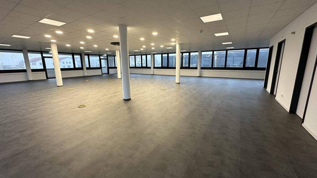 Die Büroeinheit im 1.Obergeschoss (ca. 400 m²) sowie die Einheit im 2. Obergeschoss (ca. 220 m²) ist hüfthoch verglast und mit Vinylboden und Klimaanlage ausgestattet. Die Aufteilung der Räumlichkeiten kann an Ihre persönlichen Bedürfnisse angepasst werden. Aktuell bestehen die Einheiten aus einer großen Fläche, sep. WC´s und Besprechungsraum.