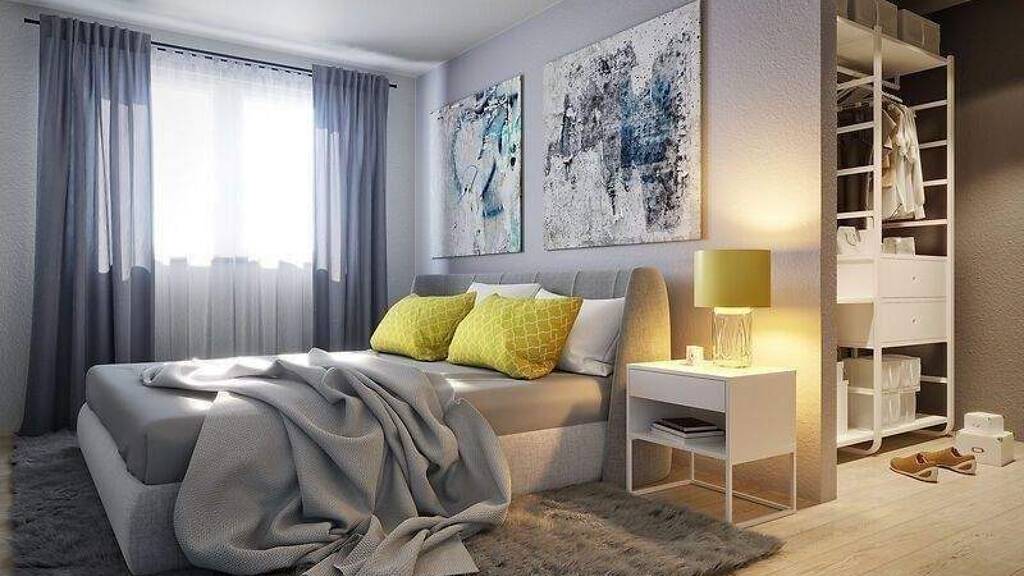 Die Ankleide im Schlafzimmer bietet viel Stauraum und lässt den Traum vom begehbaren Kleiderschrank wahr werden.