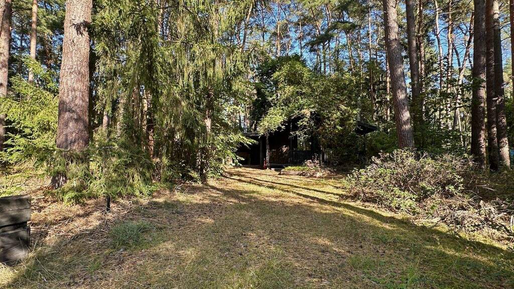 Praktisch: Direkt am Carport befindet sich ein Abstellraum für Fahrräder, Werkzeug oder Gartengeräte. Das Grundstück selbst ist naturbelassen und bewahrt seinen waldähnlichen Charakter - der Weg zum Haus bleibt bewusst ungepflastert und unterstreicht die Nähe zur Natur.