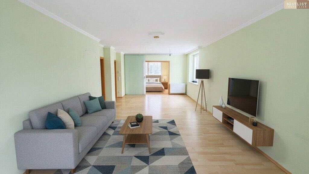 Beim Betreten der Wohnung gelangt man in einen zentralen, gut dimensionierten Vorraum, von dem aus sämtliche Räume getrennt begehbar sind. Der große Wohnbereich mit vorgelagerter Loggia bietet durch die Südost-Ausrichtung angenehme Lichtverhältnisse. Schlafzimmer, Küche, Badezimmer sowie das separate WC sind ideal vom Vorraum aus erreichbar.