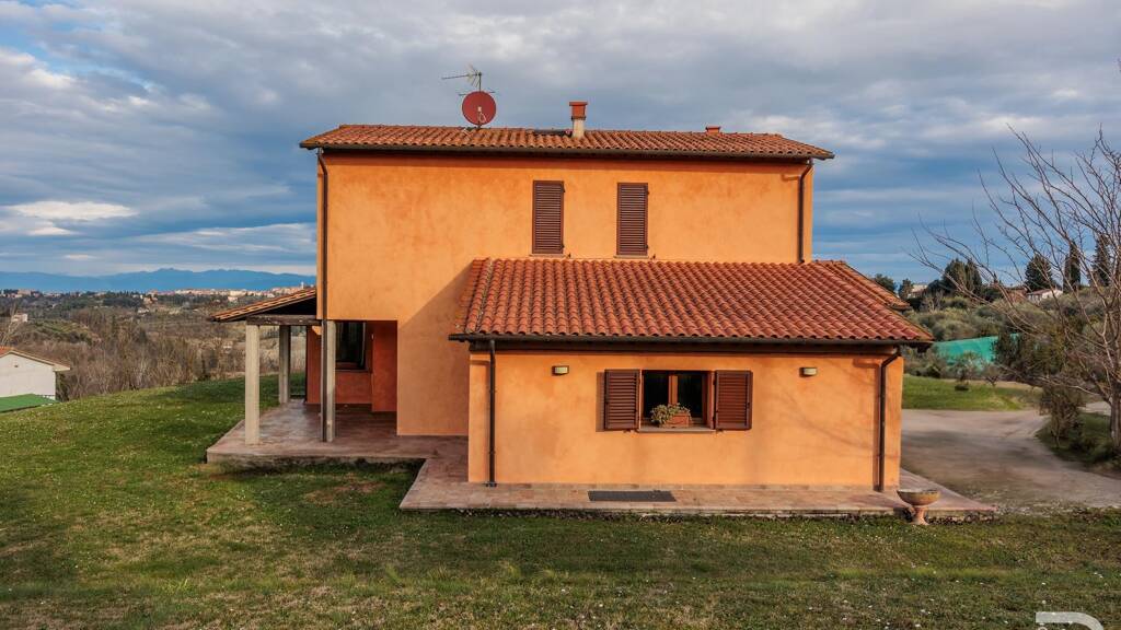 Inmitten eines malerischen Hügelpanoramas, mit einer einmaligen Aussicht auf San Miniato, erhebt sich diese Villa, die in 2011 erbaut wurde und von beeindruckender Architektur und Gestaltung zeugt.