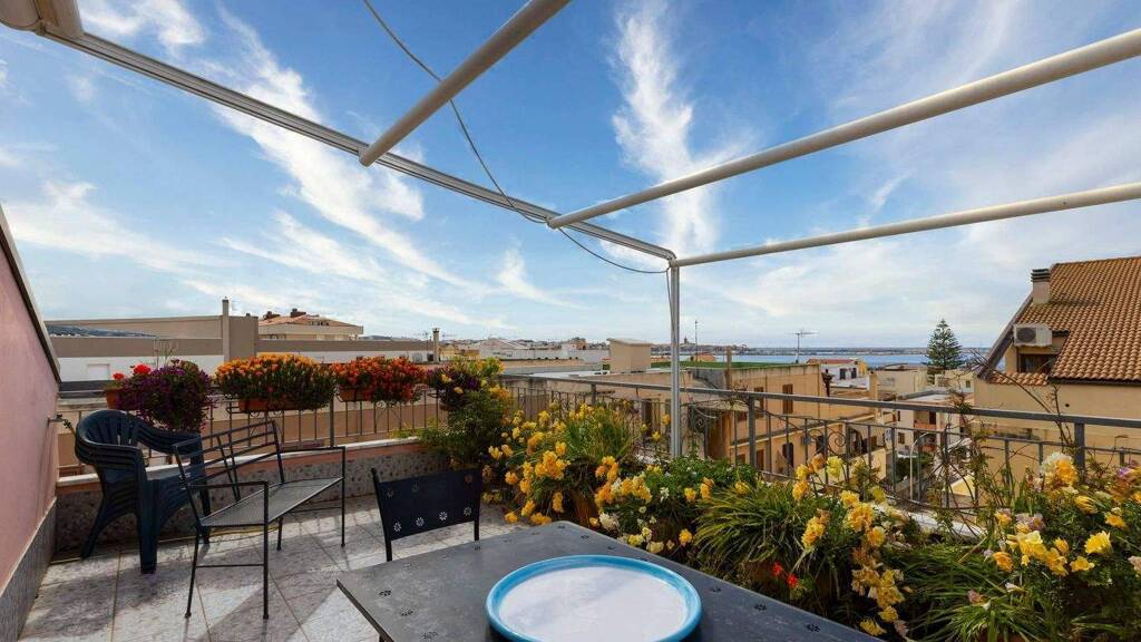 Die Terrasse ist eines der besonderen Merkmale dieser Maisonette-Wohnung mit Meerblick in Alghero: ein echter Wohnraum, ideal für Mittagessen, Entspannung und Momente im Freien, mit Blick auf den Sonnenuntergang über dem Hafen.