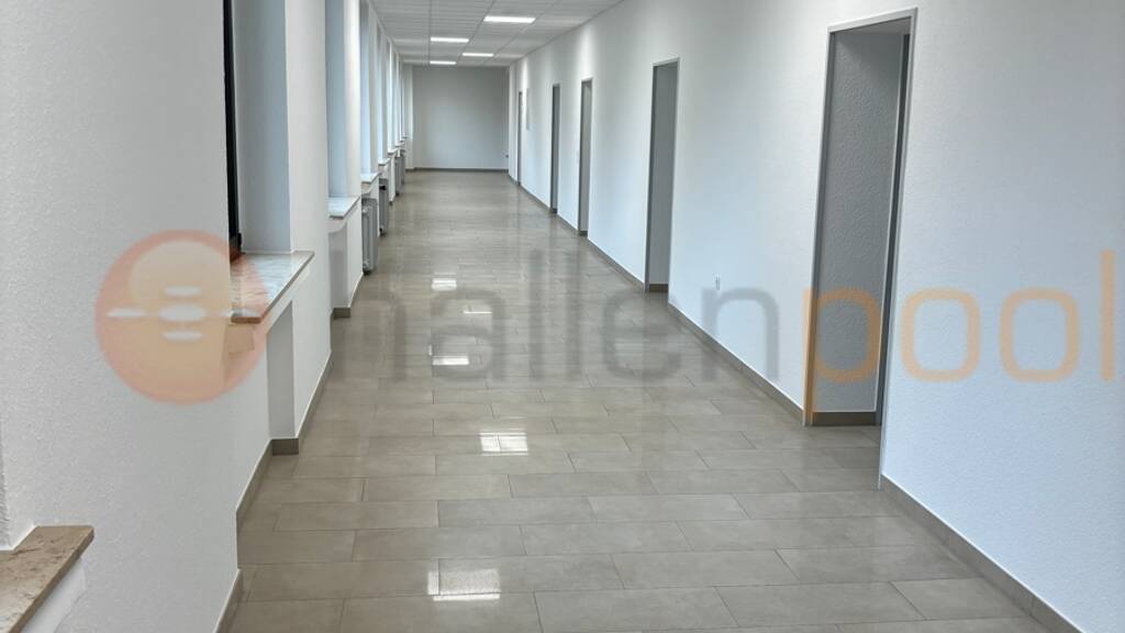 Insgesamt 7 Büroräume bzw. Behandlungszimmer stehen dem künftigen Mieter zur Verfügung. Jedes Zimmer verfügt über ein Waschbecken. Die komplette Etage ist mit hochwertigen Fliesen ausgelegt. Alle Räume sind über einen breiten Flur zugänglich, welcher z. Bsp. als Wartebereich für Kunden bzw. Patienten genutzt werden kann. Moderne Sanitäranlagen befinden sich im hinteren Bereich des Flurs.