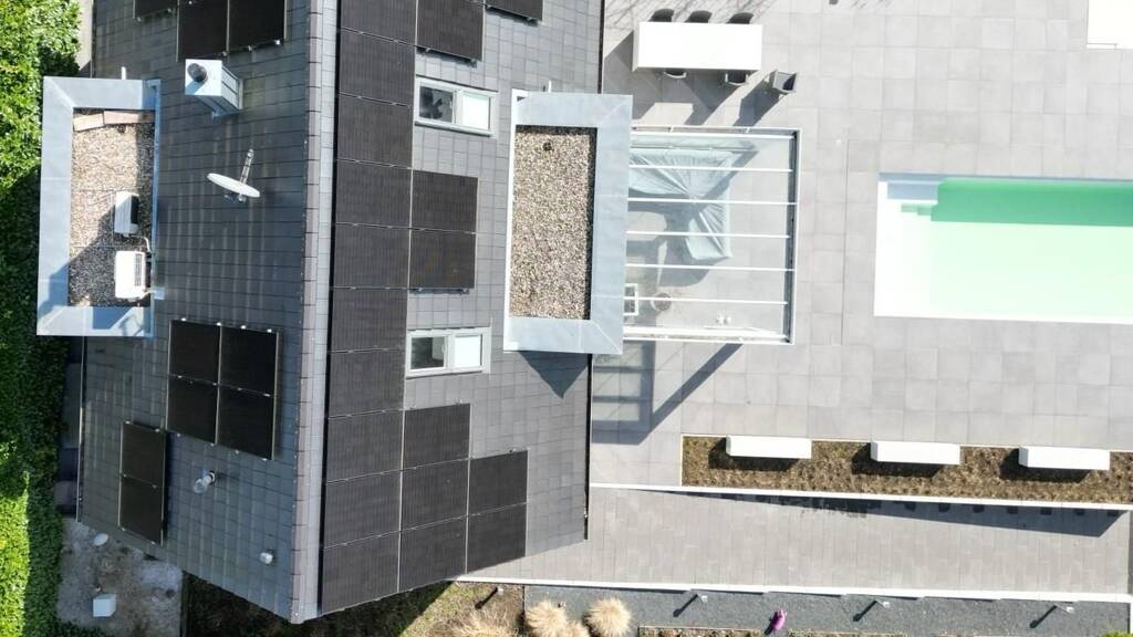 Im Erdgeschoß befindet sich neben der großen, offenen Küche das modern gestaltete Wohnzimmer mit großzügiger Essecke und fantastischem Blick in den neu angelegten Garten. Ein Gäste-WC sowie ein großer Hauswirtschaftsraum runden diese Etage ab. Im Obergeschoß befinden sich neben dem Elternschlafzimmer mit Bad en Suite 2 weitere Schafzimmer sowie 1 Bad. Diese Etage ist klimatisiert, die Fenster sind über elektrisch bedienbare Außenlamellen zu beschatten.
