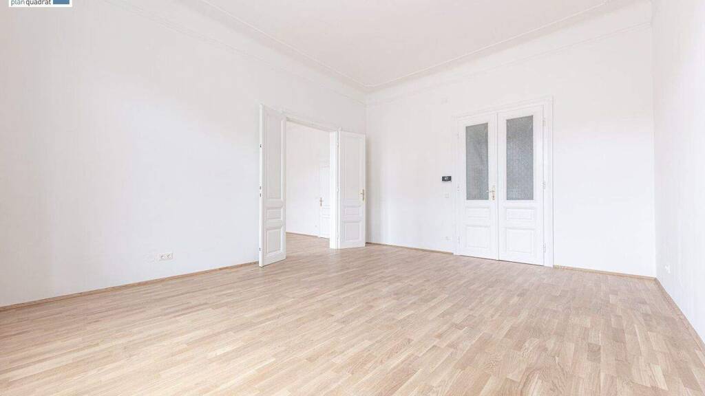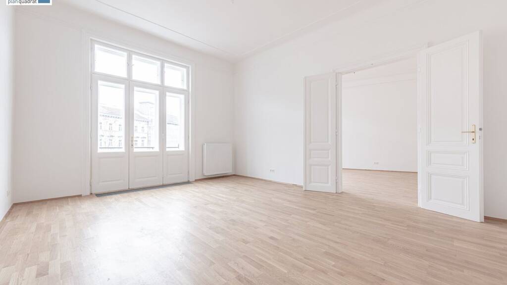 Betritt man eine Wohnung wie diese, so fühlt es sich einfach lebendiger an: der Parkettboden glänzt im Sonnenlicht und knarzt ein wenig unter den Füßen; die weißen Wandflächen sind das passende Passepartout für Ihre Einrichtung; die hohen (Flügel-) Türen haben Gewicht und durch sie betritt man weniger Räume, denn die Bühne des zukünftigen Lebens.