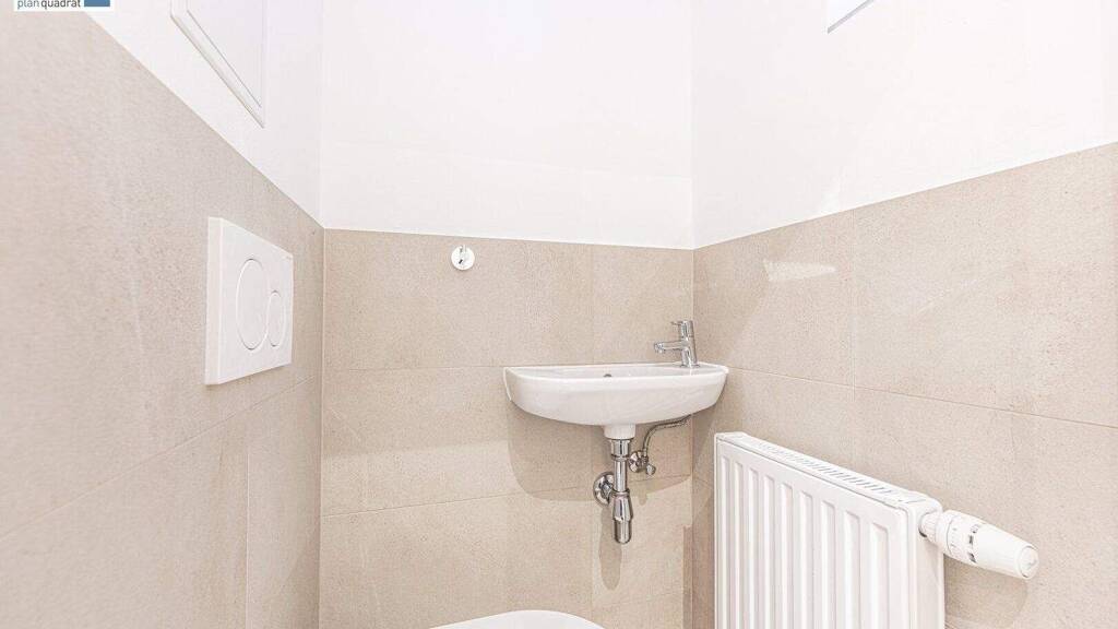 Die sandfarbene Verfliesung findet sich auch in den beiden separaten Toiletten wieder - die selbstverständlich beide auch mit einem Handwaschbecken ausgestattet sind.