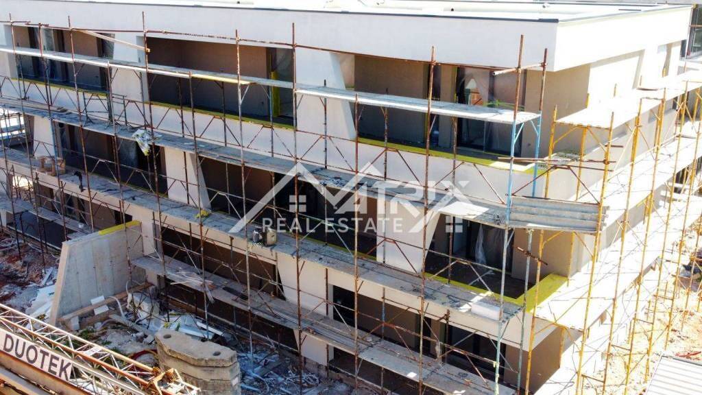 Eine moderne Wohnung im Bau steht zum Verkauf, gelegen in einer ruhigen Gegend in der Nähe von Umag. Die Nettowohnfläche der Wohnung beträgt 80,17 m² und befindet sich im ersten Stock eines Wohngebäudes mit insgesamt sechs Wohneinheiten.